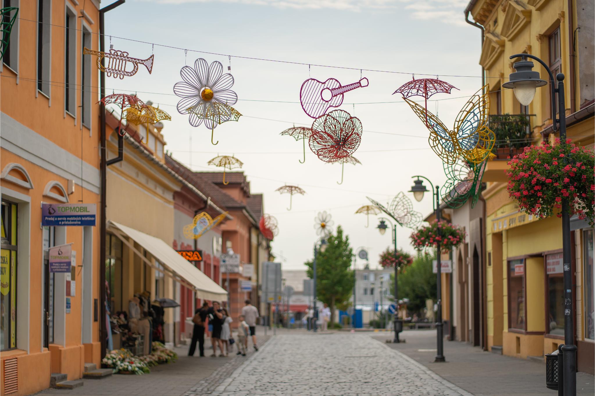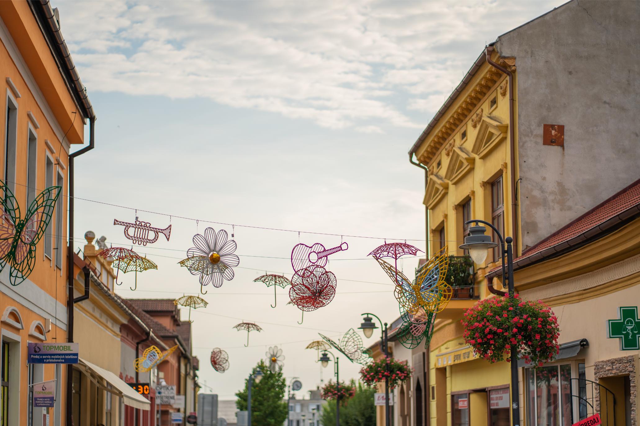 Mesto Topoľčany sa tento rok pýši svojou prvou letnou výzdobou, ktorá okamžite zožala veľký úspech u obyvateľov aj návštevníkov. Pešia zóna v centre mesta sa premenila na farebnú galériu pod holým nebom, kde nad hlavami ľudí viseli dáždniky, kvety, hudobné nástroje a motýle.