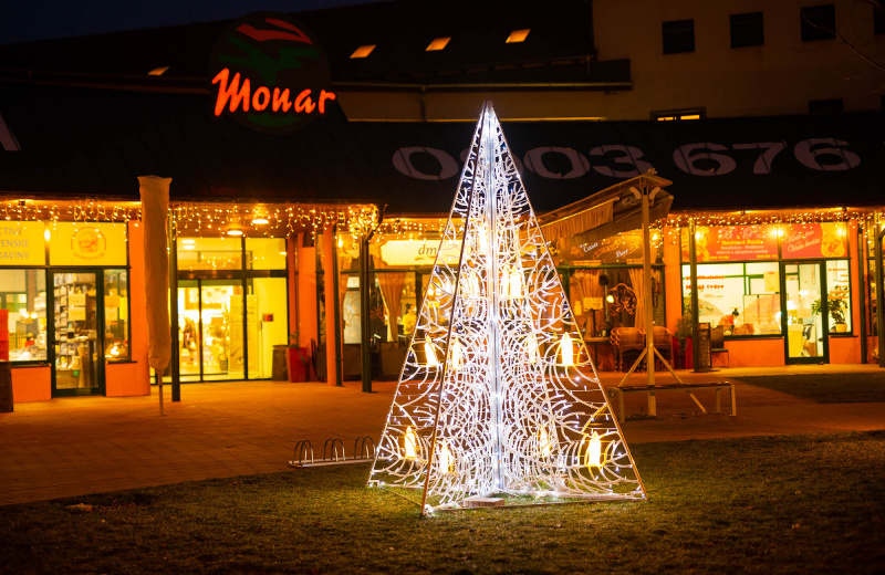 Obchodné centrum Monar sa počas vianočných sviatkov zmenilo na miesto plné pohody a sviatočného lesku. O nezameniteľnú atmosféru sa postarali svetelné strapce Blachere 352, ktoré svojim teplým bielym svetlom ozdobili exteriér centra a dodali mu elegantný vzhľad.