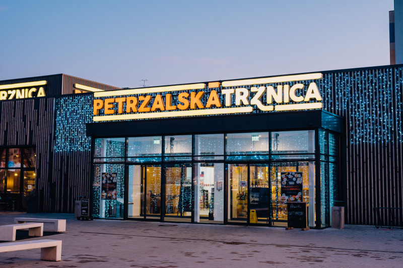 Harmónia svetla dokonale ladila s architektúrou modernej budovy tržnice. Vchod zdobili bezpečné svetelné závesy s napätím 24V, ktoré kombinovali estetiku s maximálnou spoľahlivosťou.