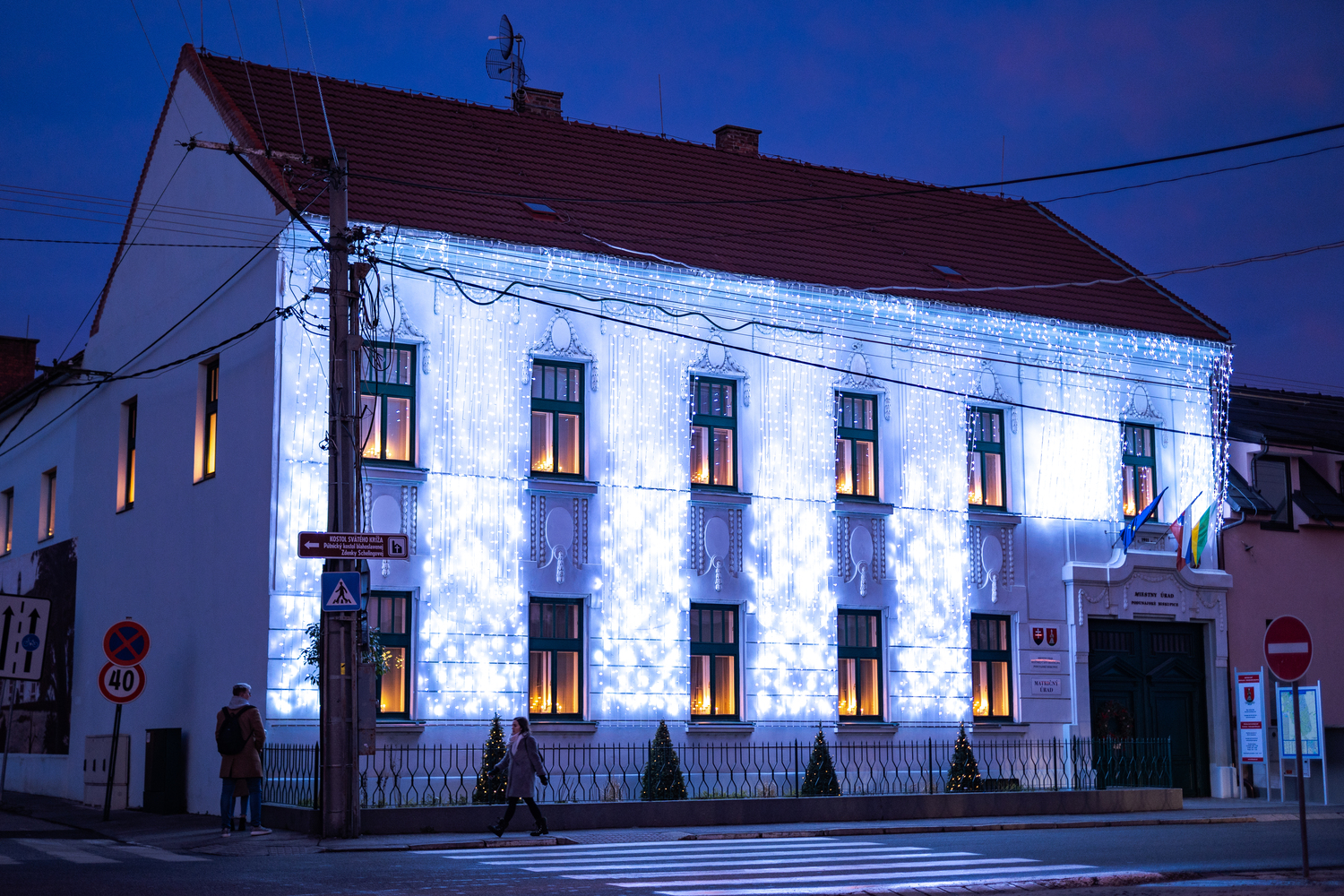 Svetelné dekorácie sa rozžiarili na stĺpoch verejného osvetlenia, čím jemne podčiarkli atmosféru bez toho, aby rušili či oslňovali vodičov. Nechýbala ani výzdoba budovy miestneho úradu, ktorá doplnila harmonický obraz sviatočného obdobia.