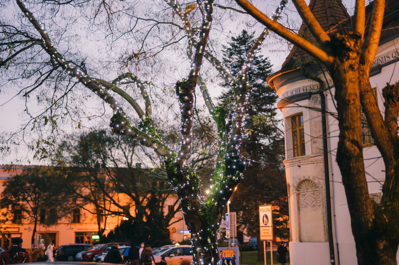 Kľúčovým prvkom boli svetelné girlandy, ktoré elegantne obopínali kmene a konáre stromov a dodali im nový, sviatočný výraz. Výsledkom bola harmonická kompozícia, ktorá rozžiarila celé centrum a priniesla do Pezinka jedinečnú vianočnú atmosféru.