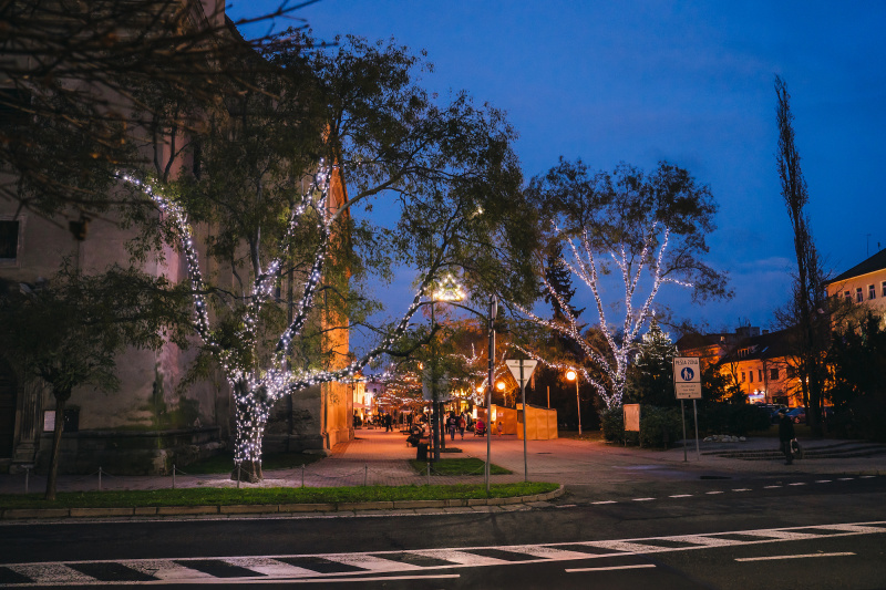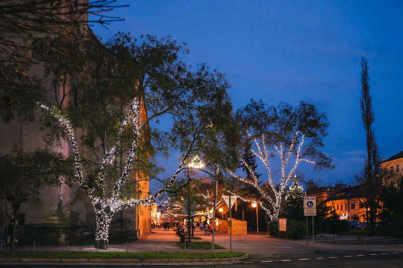 Mesto Pezinok zvolilo pri vianočnej výzdobe netradičný a veľmi efektný prístup. Keďže v centre rastie množstvo listnatých stromov, ktoré v zime pôsobia smutne, rozhodlo sa ich zakomponovať priamo do sviatočnej dekorácie. Park pred mestským úradom sa tak premenil na čarovnú panorámu plnú svetla a radosti.
