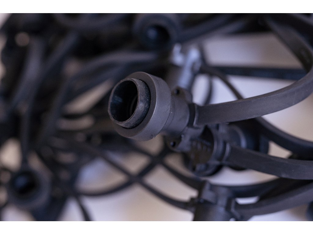 Profesionálne svetelné reťaze na Led žiarovky sú vyrobené z odolného gumeného kábla čiernej farby so závitom E27 a dĺžkou 25m. Jednoducho sa dajú zapojiť za sebou a vytvoriť tak svetelnú reťaz s dĺžkou 100m.